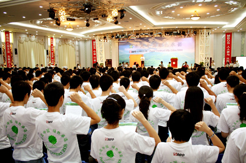 2009年,金光集团APP(中国)在苏州举行的制浆造纸可持续发展论坛上,回顾了企业“立足中国、绿色承诺”一年来的成绩,并向社会公众公布相关承诺数据达成的情况,接受社会公众的监督。2009年,APP下属的金海浆纸通过审核验收,成为海南第一家通过阶段性验收的清洁生产试点单位;金华盛和宁波亚洲浆纸业年内分别投资建设了中水回用设备和Fenton污水处理系统;金东纸业截至2009年底的环保总投入已达11.5亿元。同时,APP(中国)在2009年初完成了集团首个“碳足迹”评估项目,成为国内制浆造纸行业中首家进行大规模碳排放评估的企业,并为长期的节能减碳管理明确了基准线。