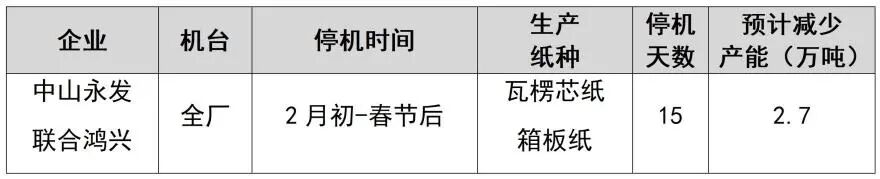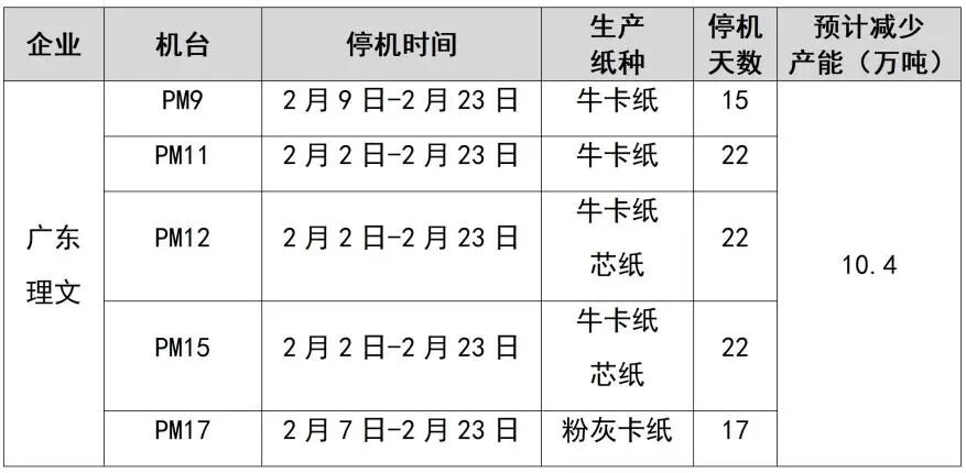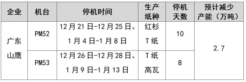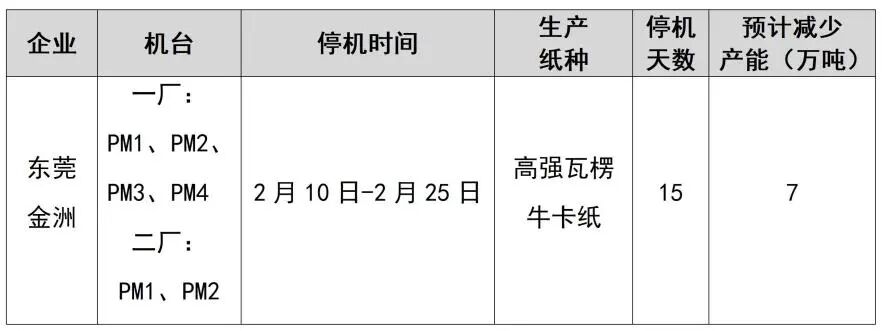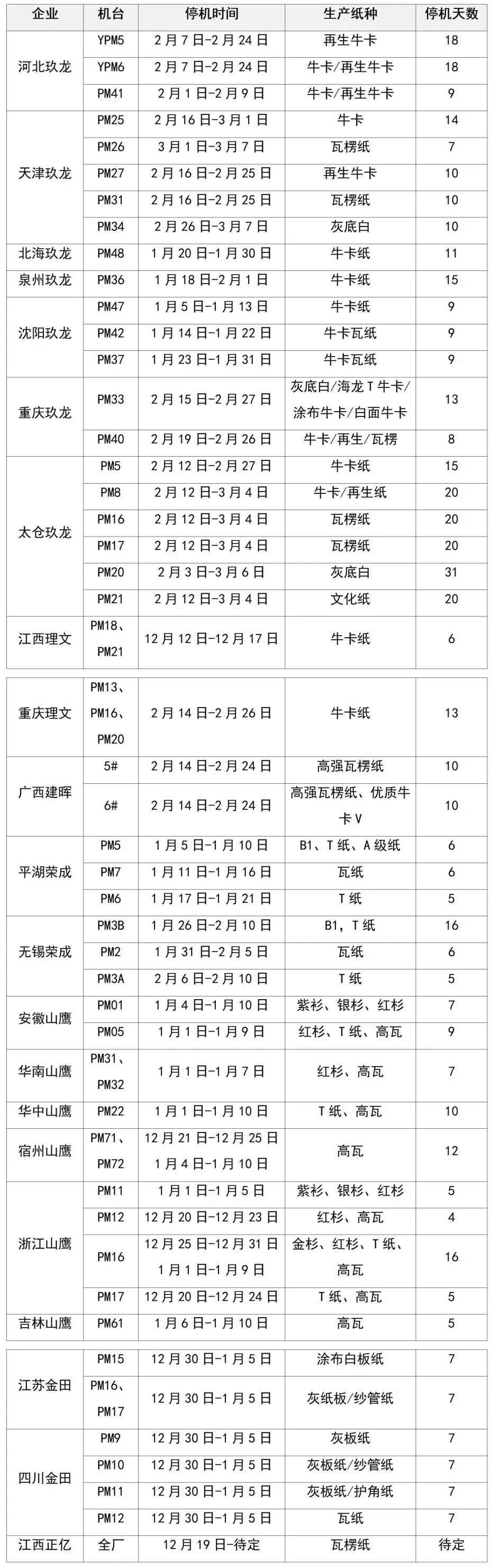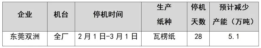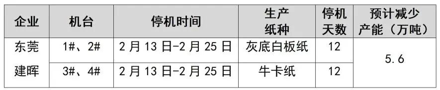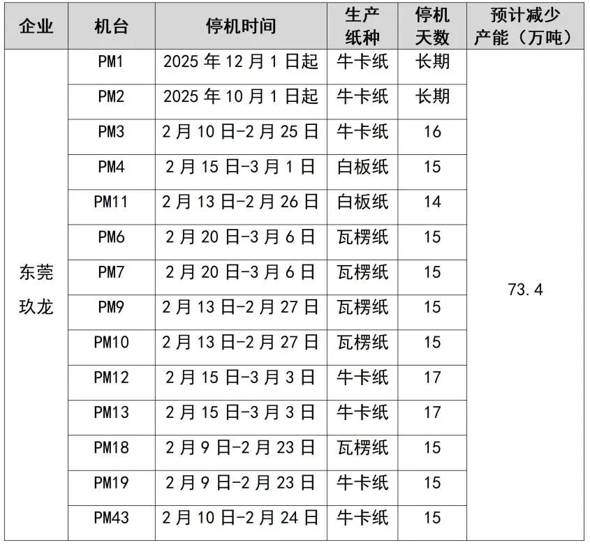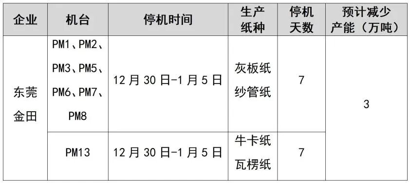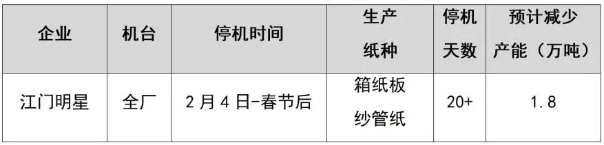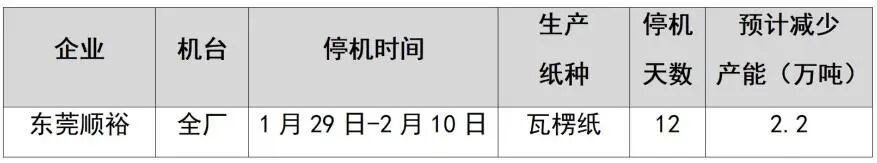 纸厂停机计划汇总(2026-01-13)